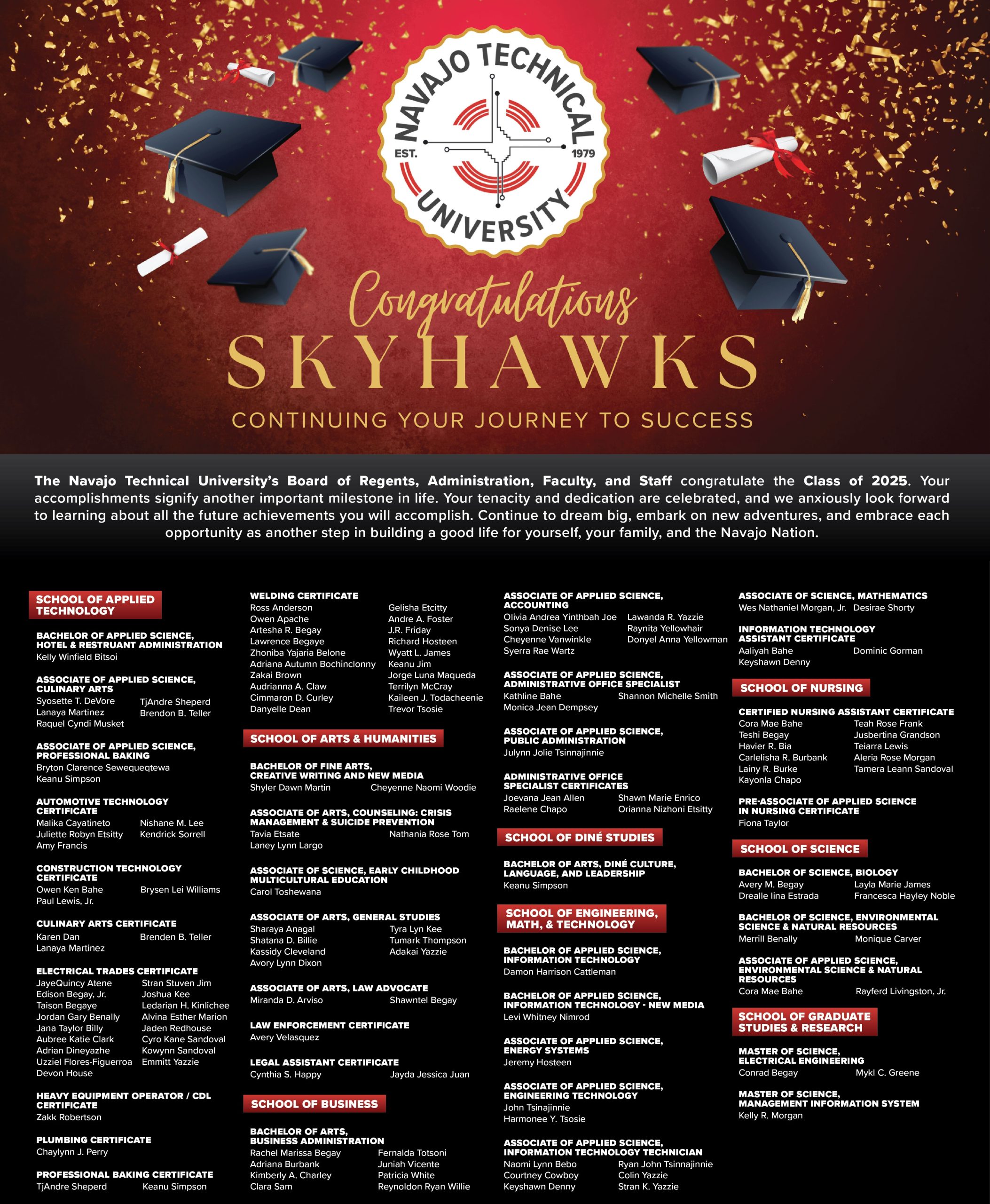 For Commencement information, please contact Dr. Delores Becenti, dbecenti@navajotech.edu or 505.387.7404.